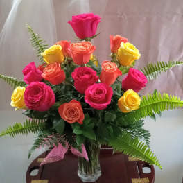 Price: $99.99One Dozen Hot Pink Roses with Statice